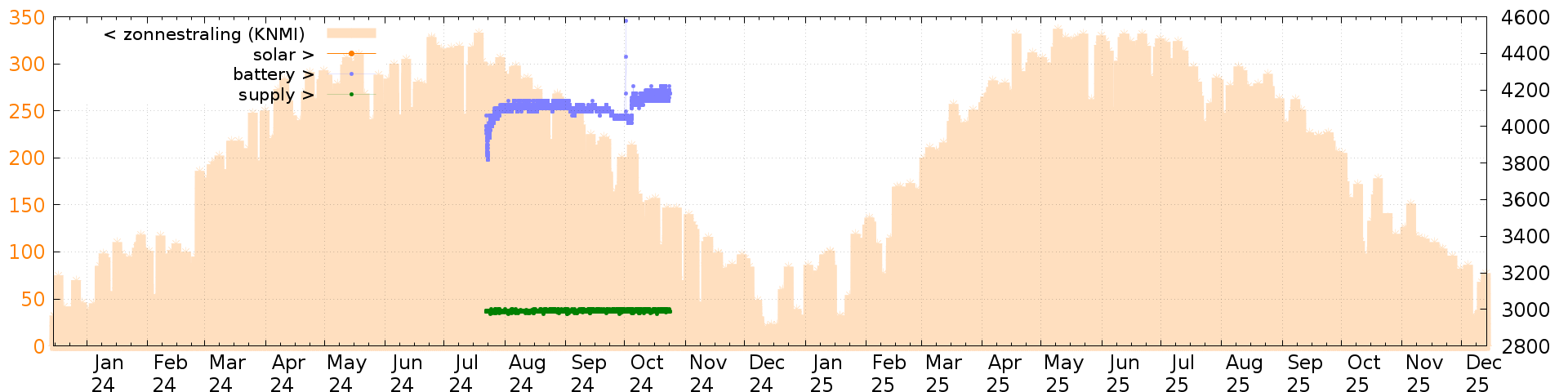 Battery and solar voltage measurements of the last 6 months: