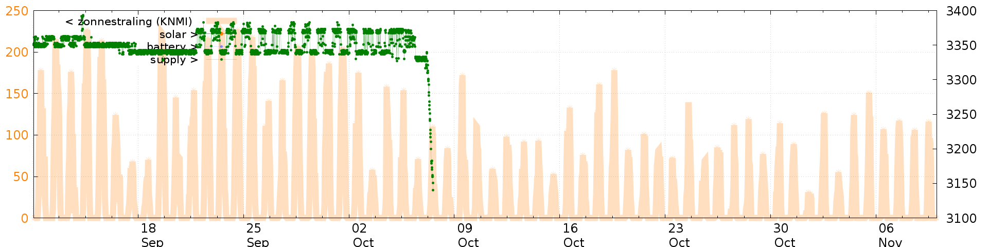 Battery and solar voltage measurements of the last 2 months: