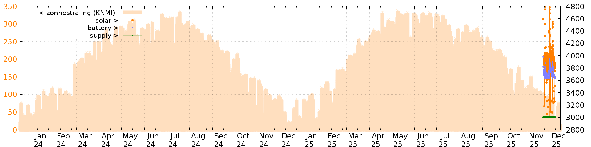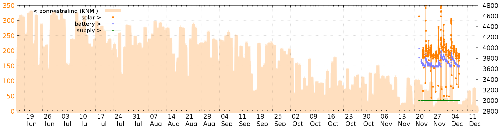 Battery and solar voltage measurements of the last 6 months: