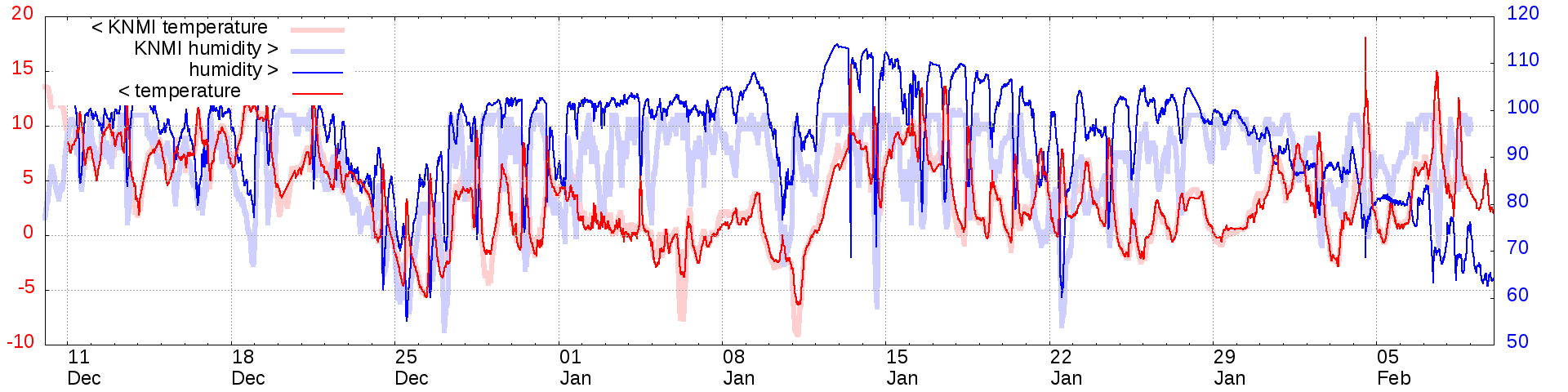 Temperature and humidity measurements of the last 2 months: