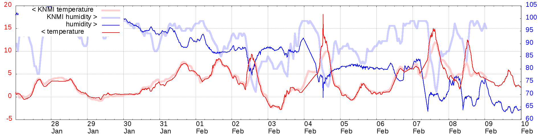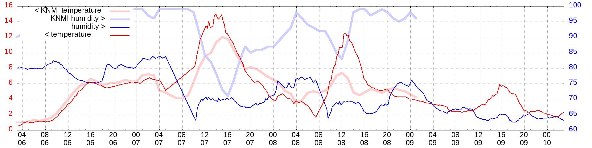Temperature and humidity measurements of the last 2 weeks: