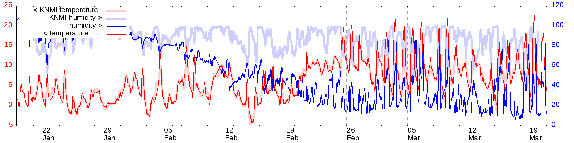 Temperature and humidity measurements of the last 2 months: