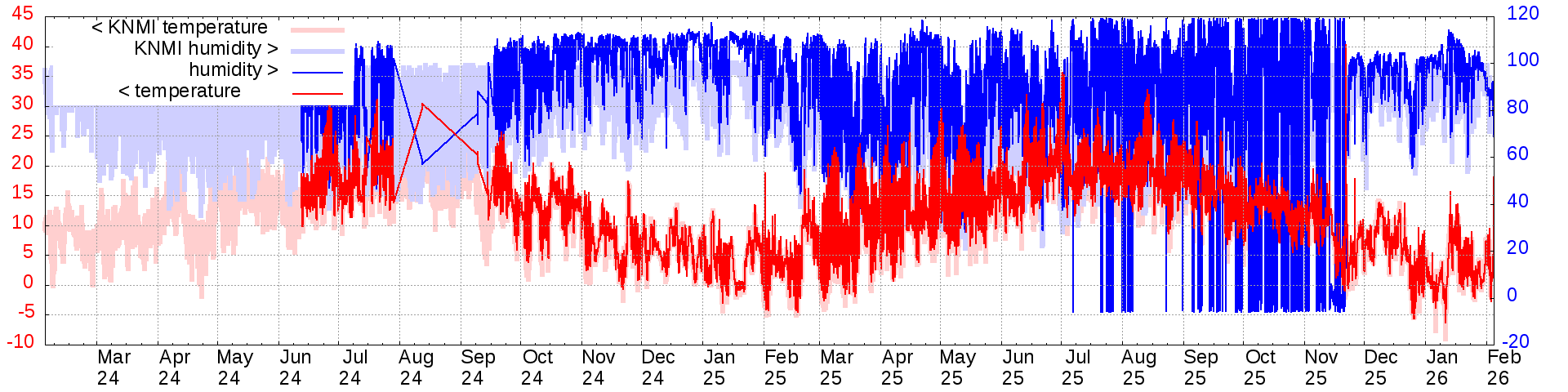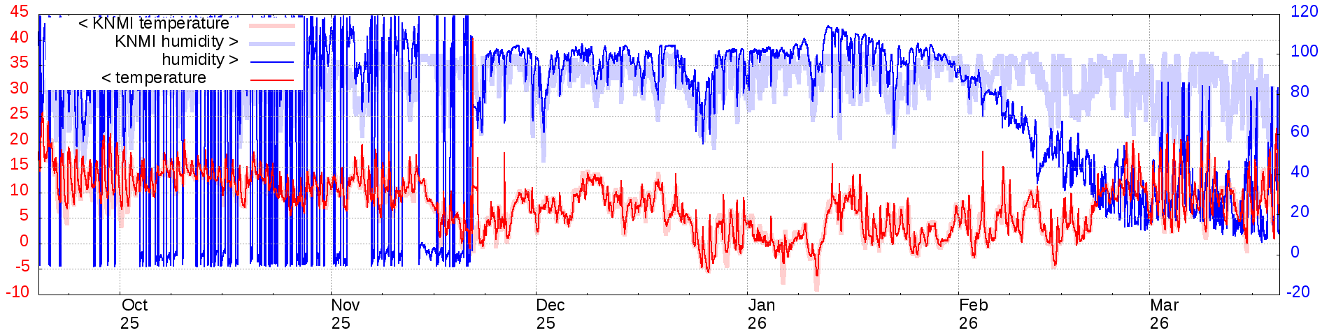 Temperature and humidity measurements of the last 6 months: