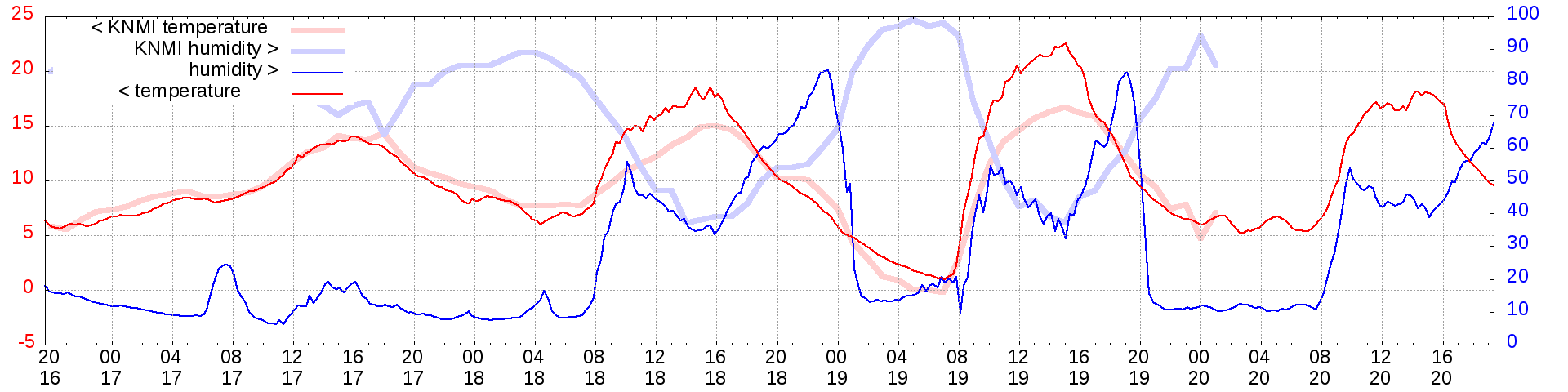 Temperature and humidity measurements of the last 2 weeks:
