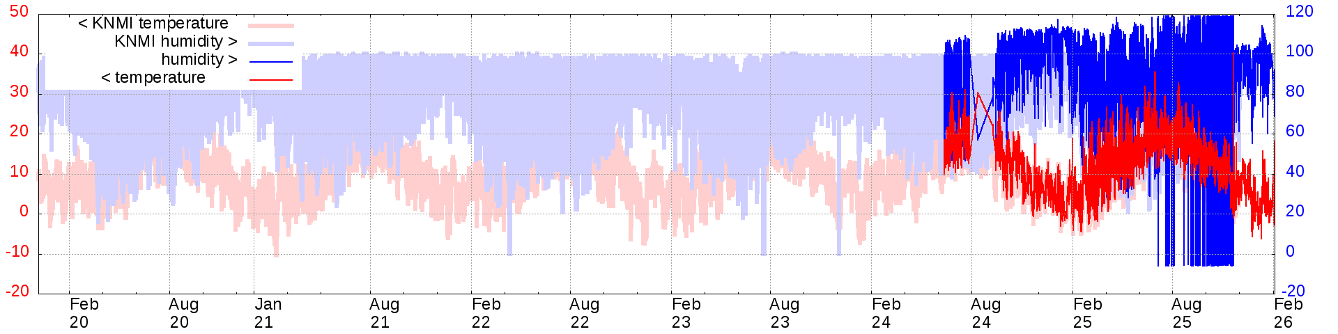 Temperature and humidity measurements of the last 2 years:
